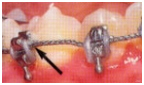 Eğer bir ligatür batıyorsa , bu teli küçük bir kaşık veya kalem arkası ile ark telinin altına doğru bükmeyi deneyiniz. Eğer bunu başaramazsanız, randevunuza gelene kadar üstüne küçük bir parça mum veya ıslak pamuk koyunuz.