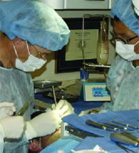 Dişsiz çene bölgelerinde , önemli anatomik yapılardan (özellikle mandibulada alveoler sinir ve mental foramenden) kaçınarak başlangıç frezi ile alıcı kemik sahası delinir. Çene kemiğinin frezle hazırlanması genellikle birkaç basamakta gerçekleştirilir.